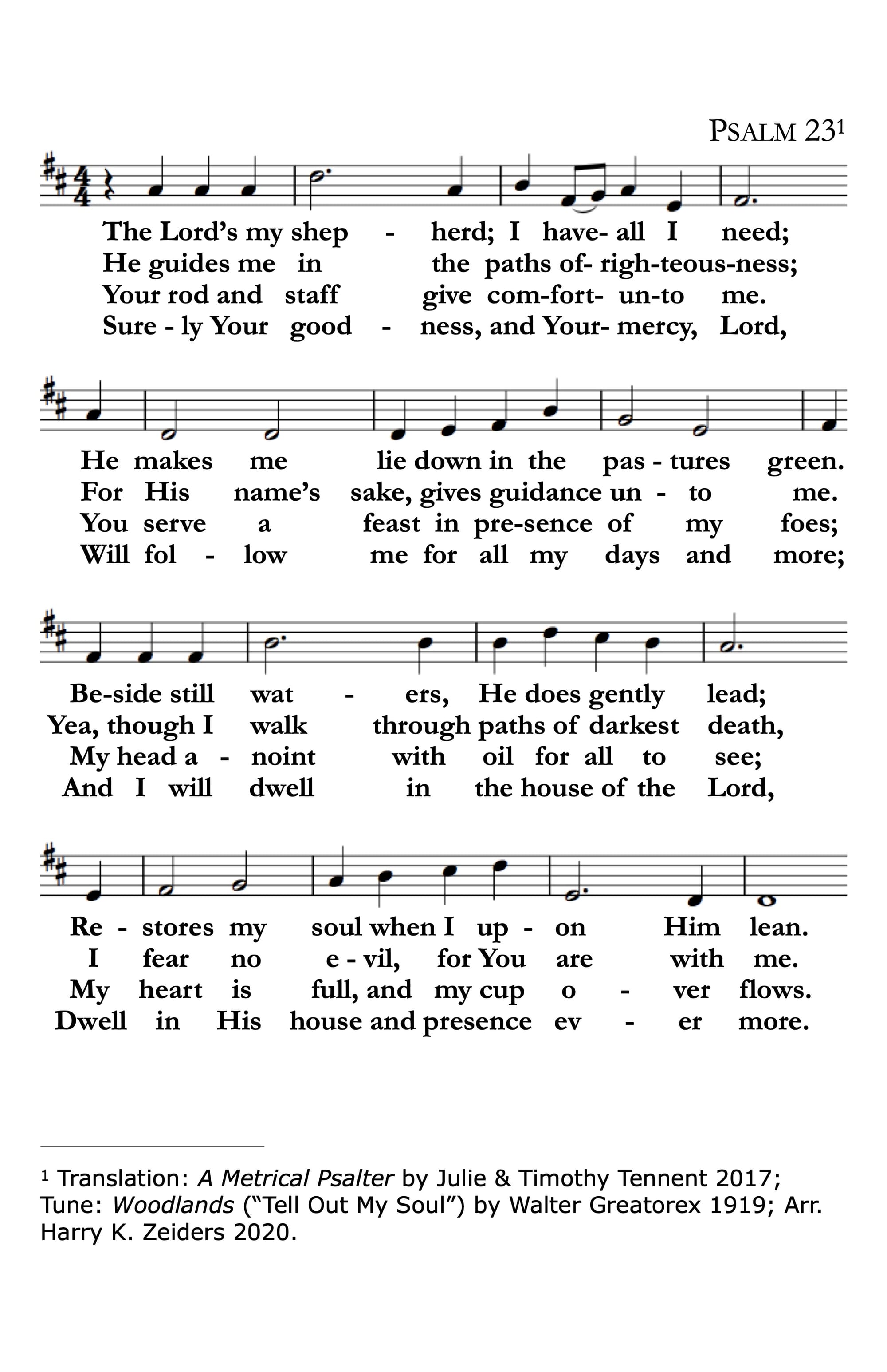 Psalm 23 sung to Woodlands